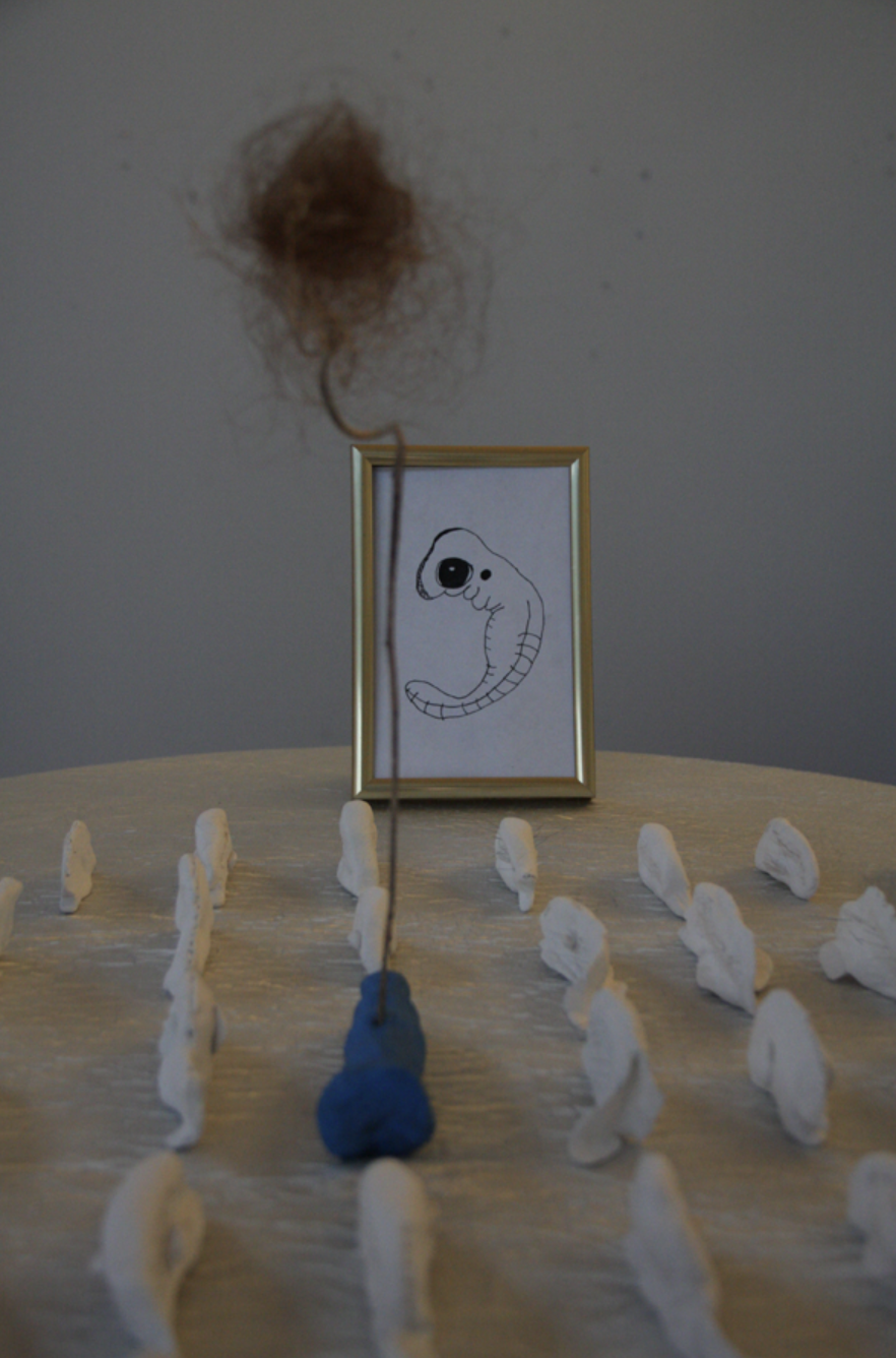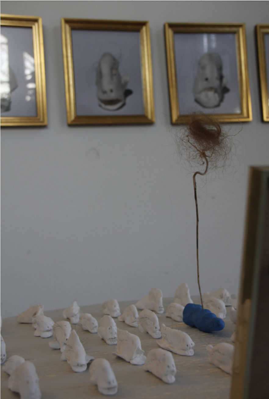 Clay, leghair, framed photos (Fujifilm photo paper), drawing, my own hair, root, play dough